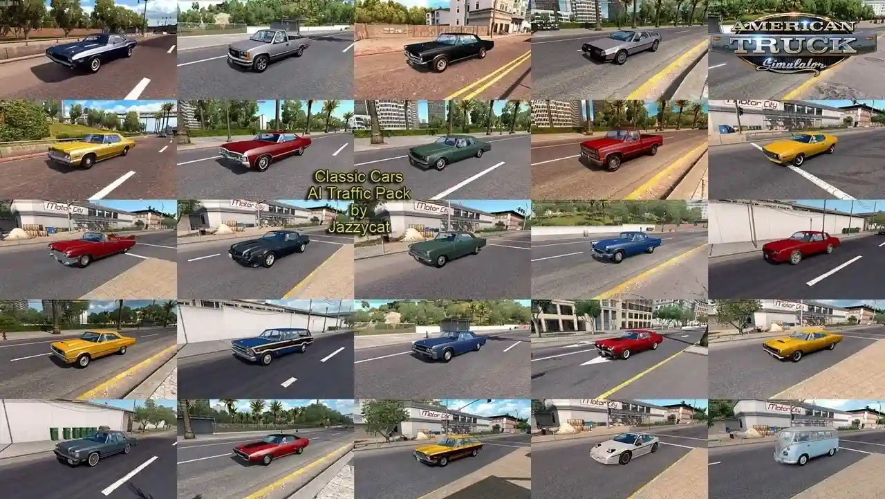با مد مجموعه ماشینهای کلاسیک در بازی American Truck Simulator حالوهوای متفاوتی را تجربه کنید. این مد تعداد زیادی خودرو کلاسیک و نوستالژیک را به ترافیک جادهها اضافه میکند تا فضای بازی طبیعیتر و جذابتر شود.