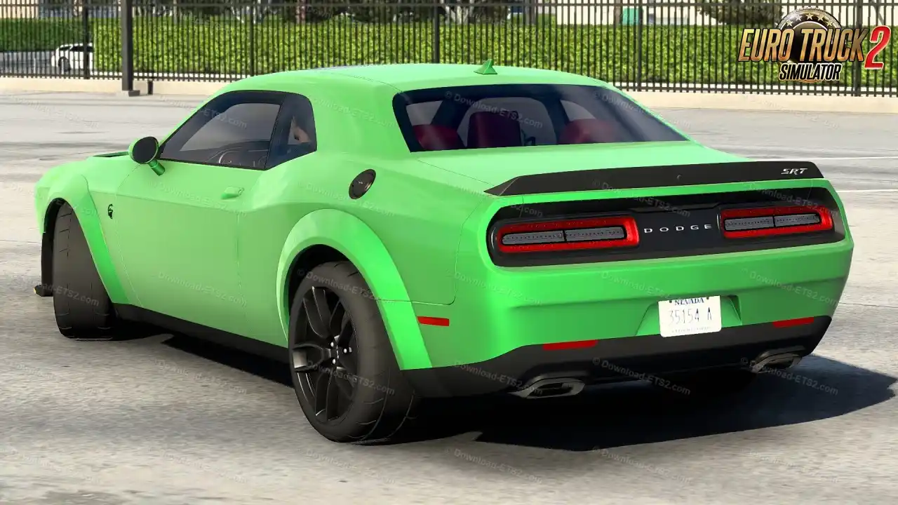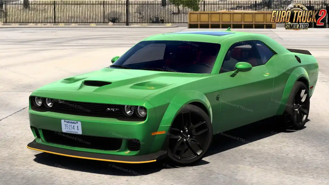 مد ماشین Dodge Challenger SRT Hellcat Widebody 2018 ساختهی DN Modding و Nimit یکی از بهترین و دقیقترین مدهای خودروهای ماسل آمریکایی در بازی Euro Truck Simulator 2 است. این مد با مدل سهبعدی واقعگرایانه، طراحی داخلی با جزئیات بالا، صدای واقعی موتور Hellcat، نورپردازی طبیعی و فیزیک رانندگی واقعی ساخته شده است.