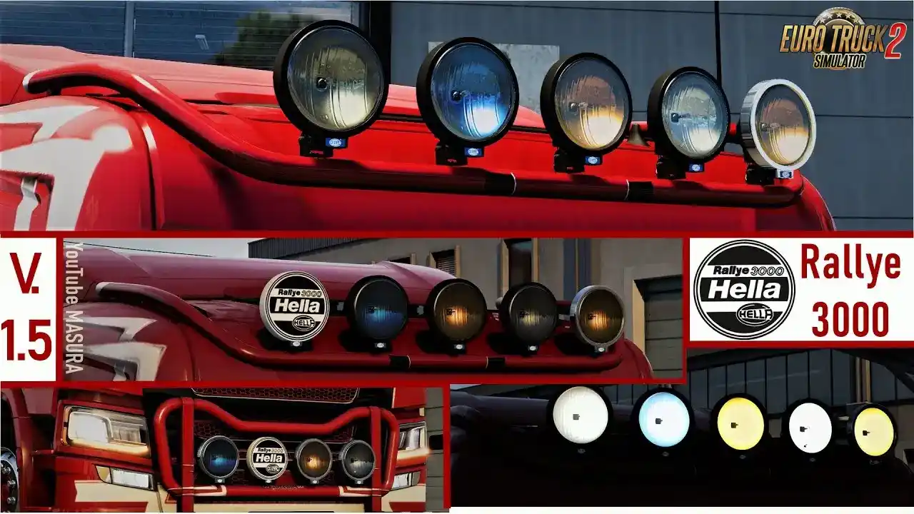 مد Hella Rallye 3000 Lights Pack یکی از مودهای کلاسیک و محبوب چراغهای رانندگی برای بازی Euro Truck Simulator 2 است که توسط obelihnio با همکاری Niskarli ساخته شده است. این مد مجموعهای از چراغهای معروف Hella Rallye 3000 را با طراحی دقیق و نورپردازی واقعگرایانه به کامیونهای ETS2 اضافه میکند.