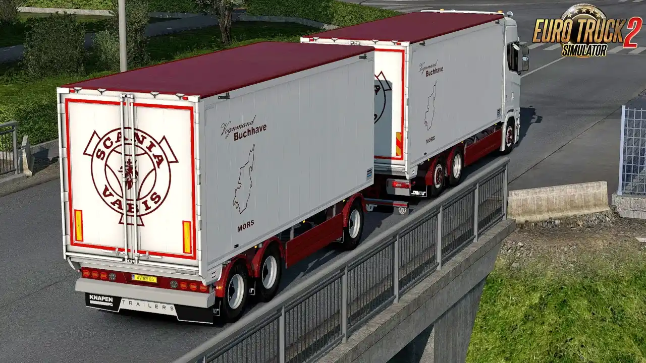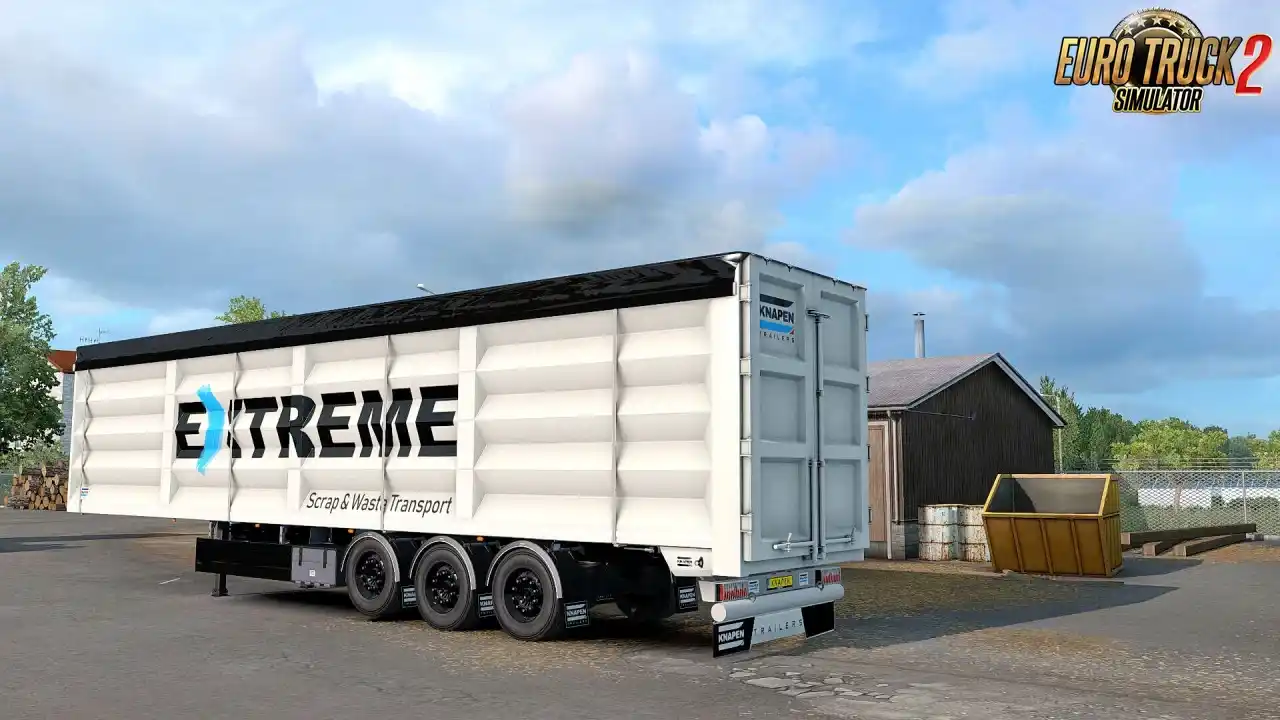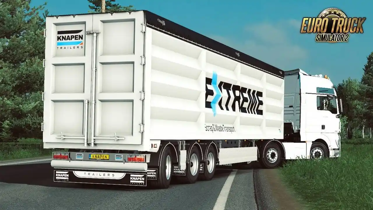 مد تریلر Knapen K100 یک افزونه حرفهای و باکیفیت ساختهی SCS Software و Kast است که یک تریلر فوقالعاده جزئیپردازیشده از نوع Walking Floor را به بازی ETS2 اضافه میکند. این تریلر با دقت بسیار بالا مدلسازی شده و شامل جزئیات کامل بدنه، محورها، سیستم ترمز، چراغها و تزئینات استاندارد برند Knapen است.