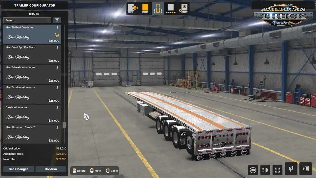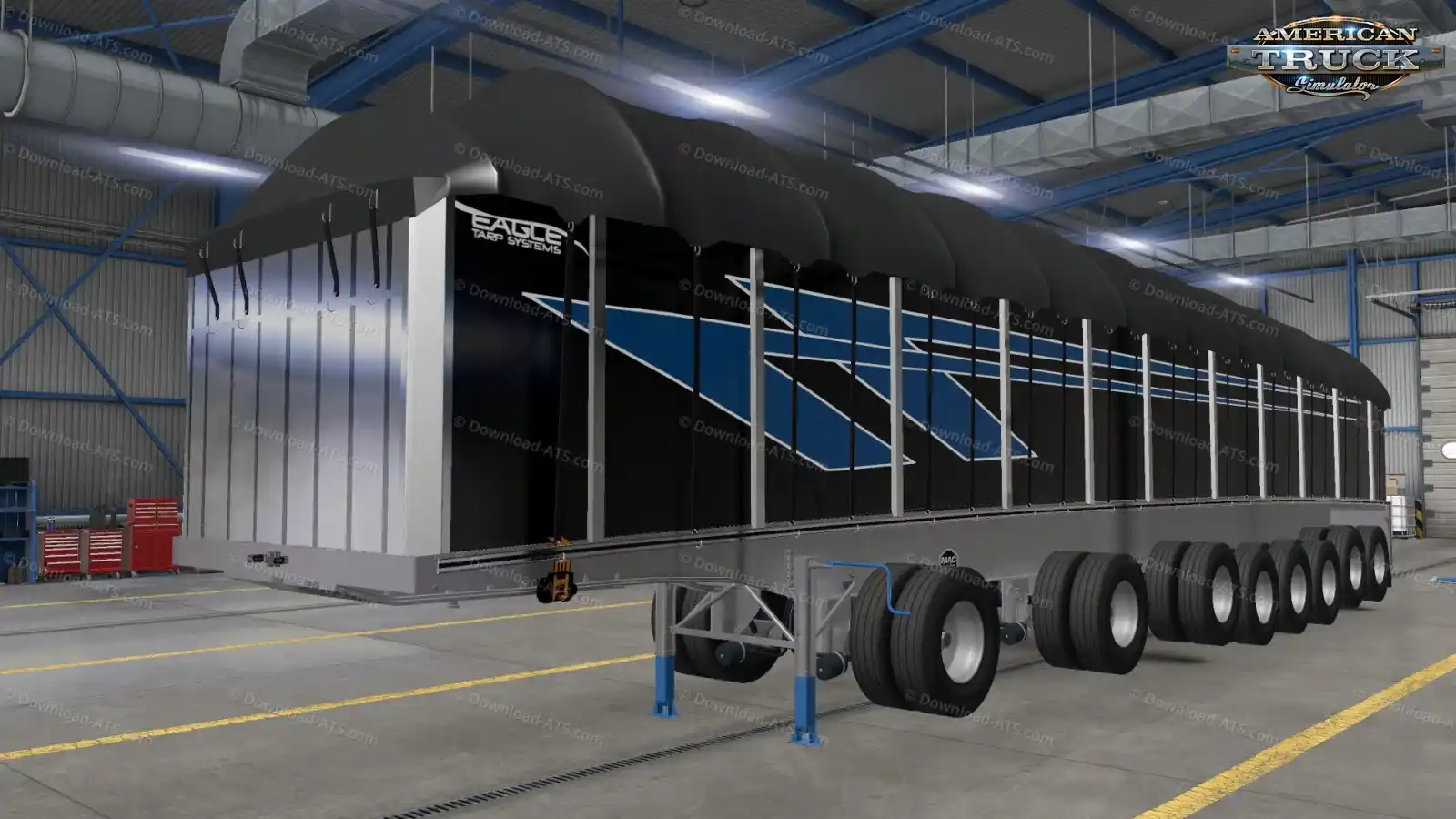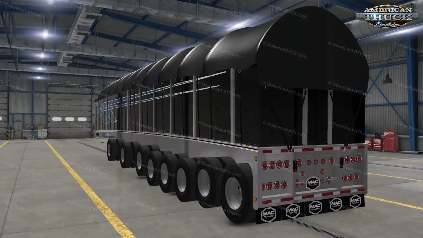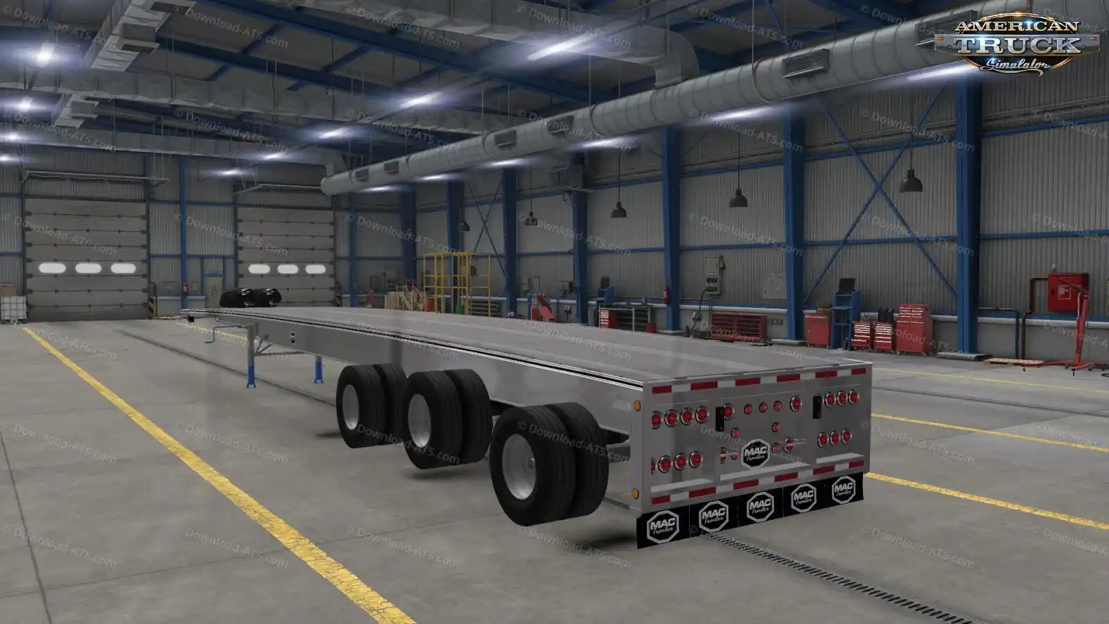 مد Mack 53ft Trailer ساختهی Dro Modding, Caleel Jackson, Mado Yaghi, Seth Burwash, Andrew Martin, John Ruda, BART, Samson, Hardtruckisthebest, Ventures87, Wendi, Robert Modjeski, Jazzycat یکی از واقعگرایانهترین و کاملترین تریلرهای طراحیشده برای بازی American Truck Simulator (امریکن تراک) است.