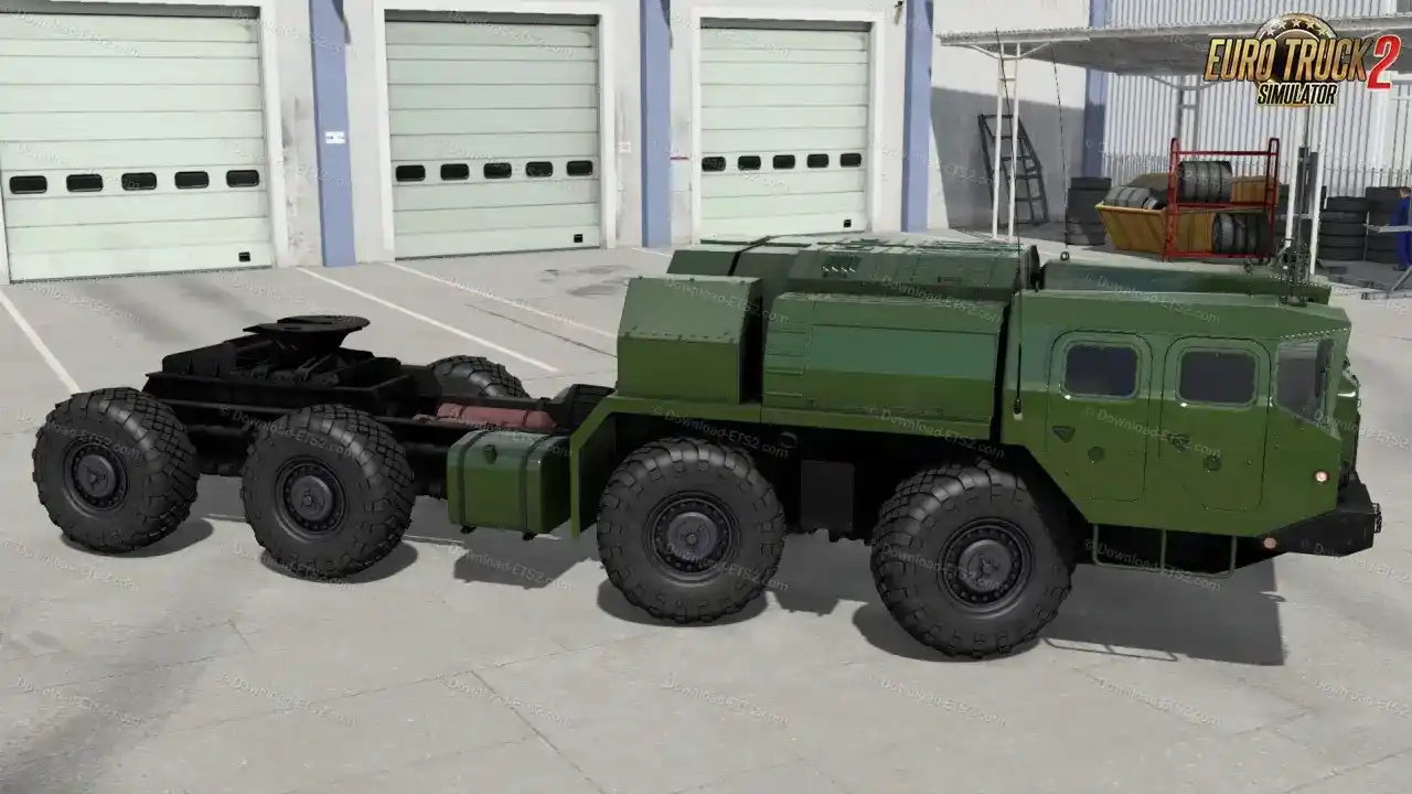 کامیون نظامی MAZ-7910 + داخلی به تازگی برای بازی یورو تراک ۲ توسط MidlifeHemi88, DUCK3D, Bormann's Performance, Turbosquid ساخته و منتشر شده است.