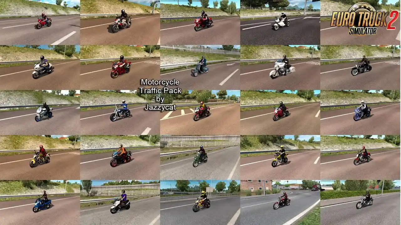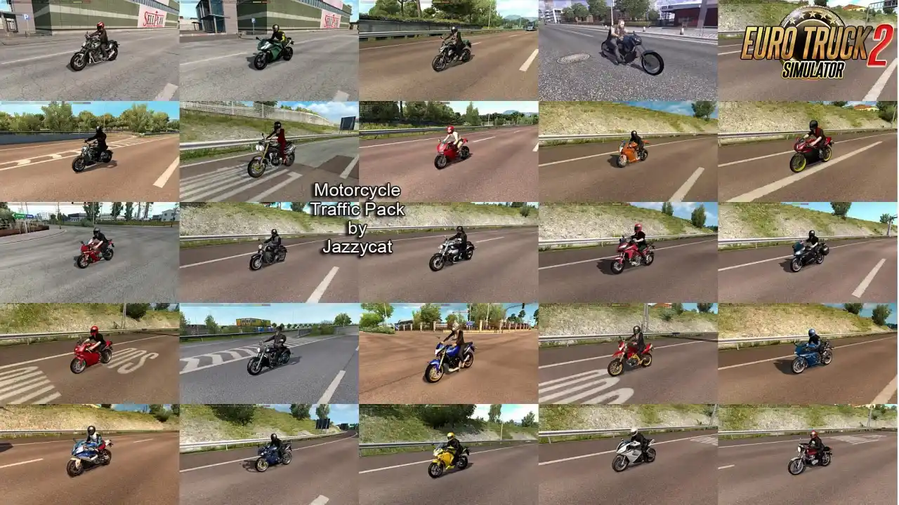 با مد مجموعه موتور سیکلت ساخته شده توسط Jazzycat برای بازی Euro Truck Simulator 2، جادههای خود را با انواع موتور سیکلتهای متنوع و واقعگرایانه پر کنید.