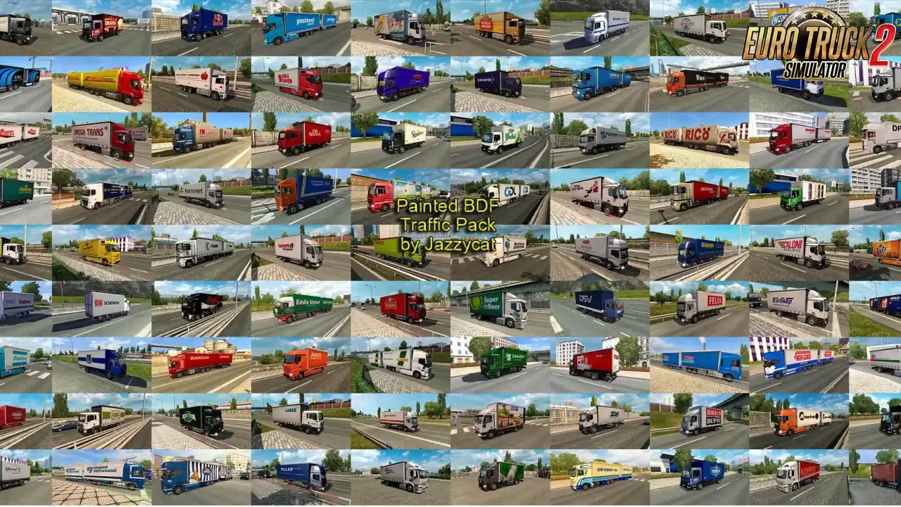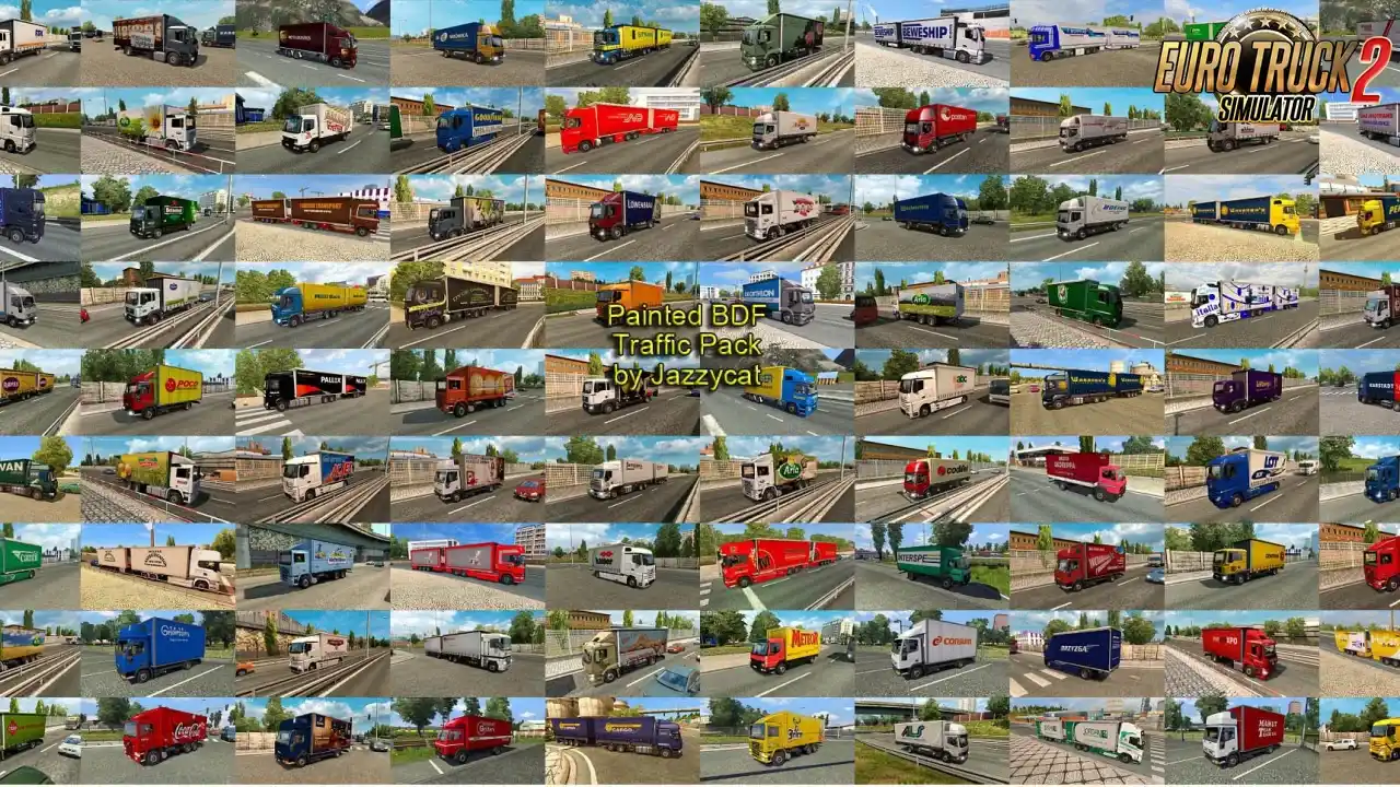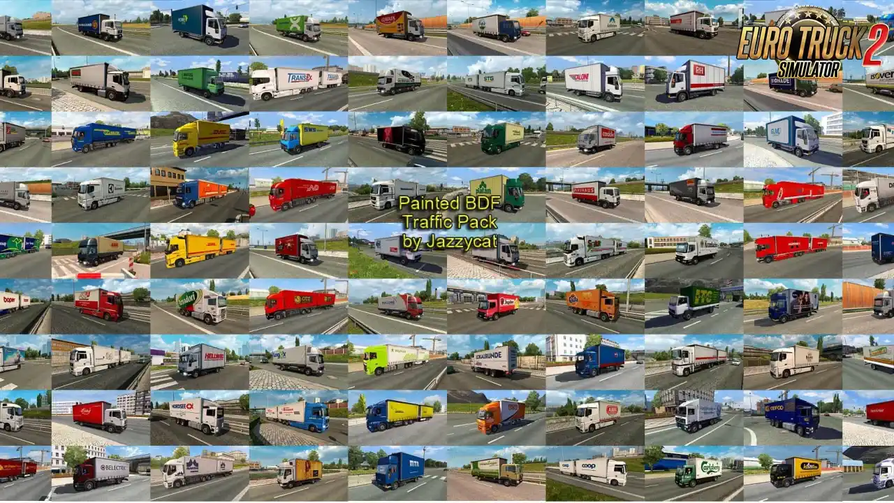 مد Painted BDF Traffic Pack ساخته شده توسط Jazzycat برای Euro Truck Simulator 2 یک مجموعه فوقالعاده از کامیونهای BDF نقاشی شده را به ترافیک بازی اضافه میکند.