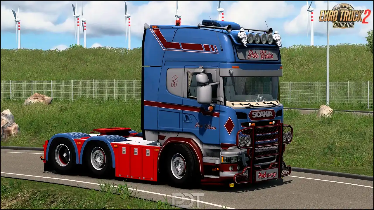 مد Scania R520 Peter Waters + Trailer یکی از مودهای حرفهای و جذاب برای بازی Euro Truck Simulator 2 است که توسط PlatinumDesignTruck ساخته شده است. این مد یک نسخه ویژه و شخصیسازیشده از کامیون محبوب Scania R520 را به همراه تریلر اختصاصی ارائه میدهد و با طراحی خاص، کیفیت بالا و هماهنگی کامل کامیون و تریلر، یک ست کامل و چشمنواز برای طرفداران اسکینها و تیونینگ حرفهای محسوب میشود.