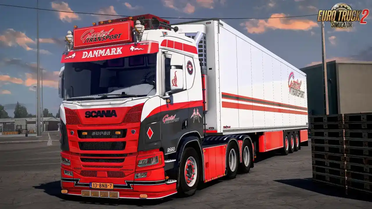 مد کامیون اسکانیا R660 دانمارک + تریلر ساختهی Gaming Modding یک کامیون قدرتمند و واقعگرایانه با تریلر هماهنگ برای بازی یورو تراک ۲ است.