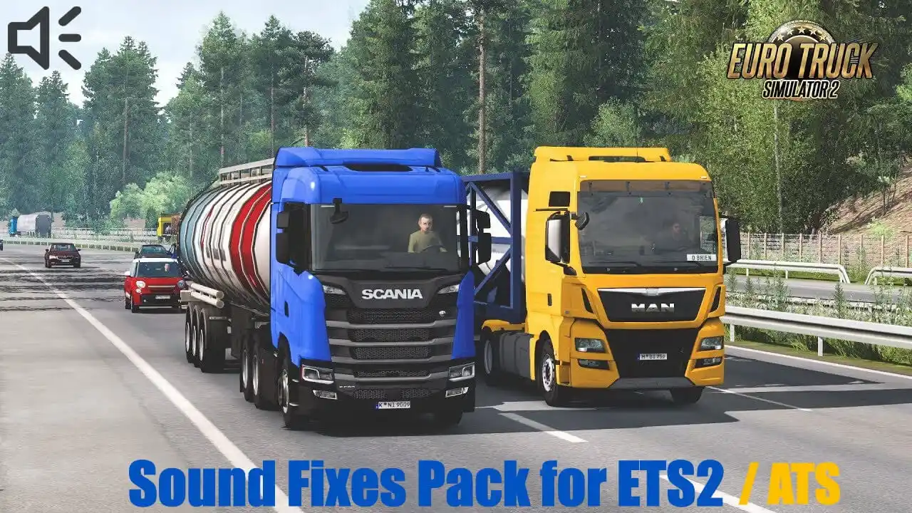 مد مجموعه فیکس صدا برای بازی Euro Truck Simulator 2 توسط Drive Safely حرفهای ساخته شده است. این مد مجموعهای کامل از اصلاحات صوتی را به بازی اضافه میکند تا کیفیت صدای موتور، محیط و تجهیزات را بهبود دهد.