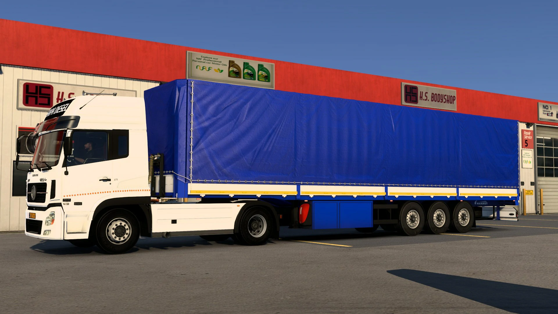 تریلر چادر ماموت بر پایه مدل واقعی شرکت ماموت ساخته شده و دارای کیفیت بسیار بالا، تکسچرهای دقیق، جزئیات بدنه واقعی، محورهای متحرک، بازتاب نور طبیعی، فیزیک دقیق و سازگاری کامل با نسخههای جدید بازی Euro Truck Simulator 2 است.