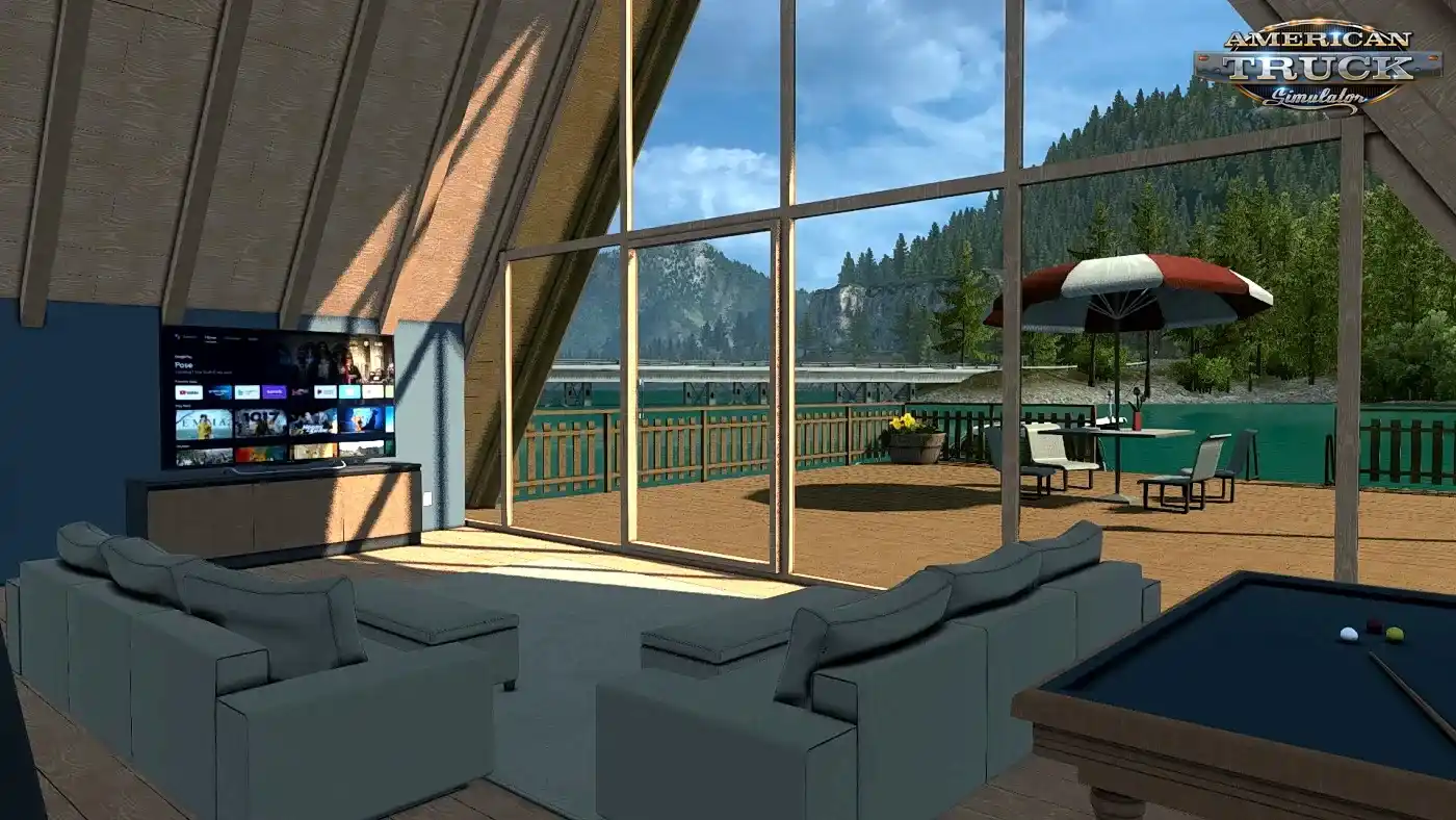مد نقشه کلبه دریاچه واشنگتن (A-Frame) ساختهی Sythendrius یک نقشه کوچک و چشمنواز برای بازی American Truck Simulator است.